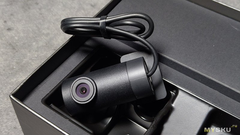 Вторая камера крепится на заднее стекло автомобиля, данные с неё пишутся параллельно в отдельный файл. Может выполнять роль камеры заднего вида. Её параметры — модель RC22, разрешение FullHD (1920 x 1080), диафрагма: F2.00, угол обзора:130°, 30 FPS.