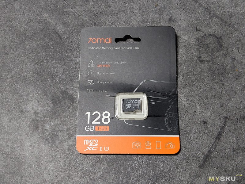 В моём случае имеется максимальная комплектация камеры — она естественно дороже. В комплекте поставляются две коробки, в одной из которых сам видеорегистратор, а во второй OBD-кит для подключения к диагностическому разъёму + карта памяти microSD на 128Гб под логотипом этого бренда со скоростью обмена информацией 100мб/с.