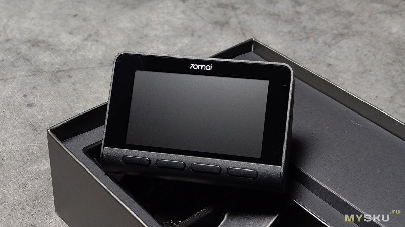Корпус видеорегистратора имеет классический прямоугольный вид с треугольным профилем. На лицевой стороне расположен дисплей диагональю 3" IPS 640x360, не сенсорный, под ним четыре физические клавиши. Устройство оснащено G-сенсором, который в случае столкновения активирует аварийную запись видео. В качестве питания используется суперконденсатор.