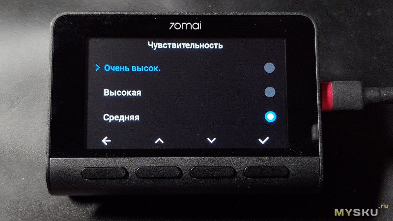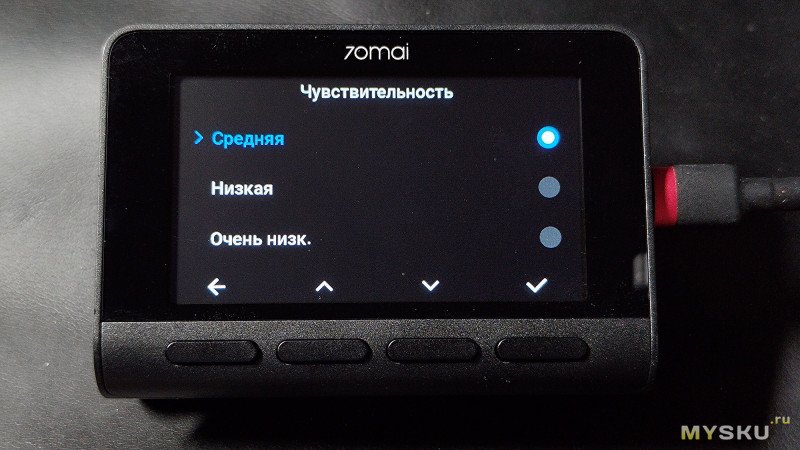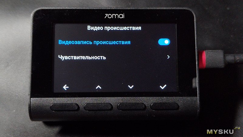 Датчик удара функционирует, в меню настраивается чувствительность, в случае удара, тряски или вибрации, запускается аварийная запись видео. Парковочной камеры это тоже касается, как вариант, можно, например, её развернуть внутрь салона.