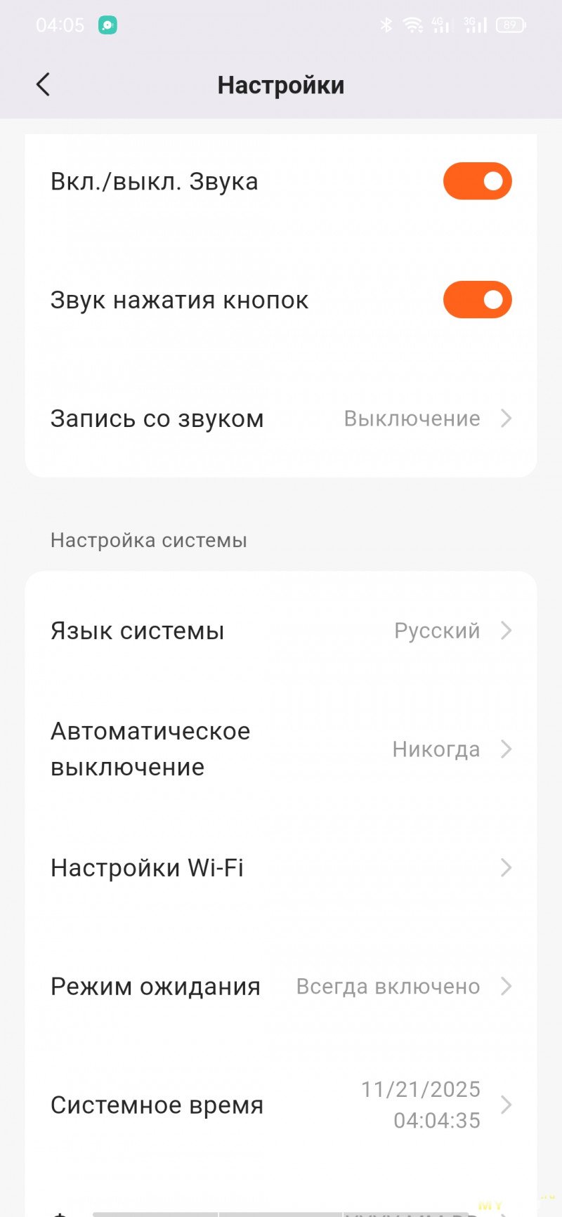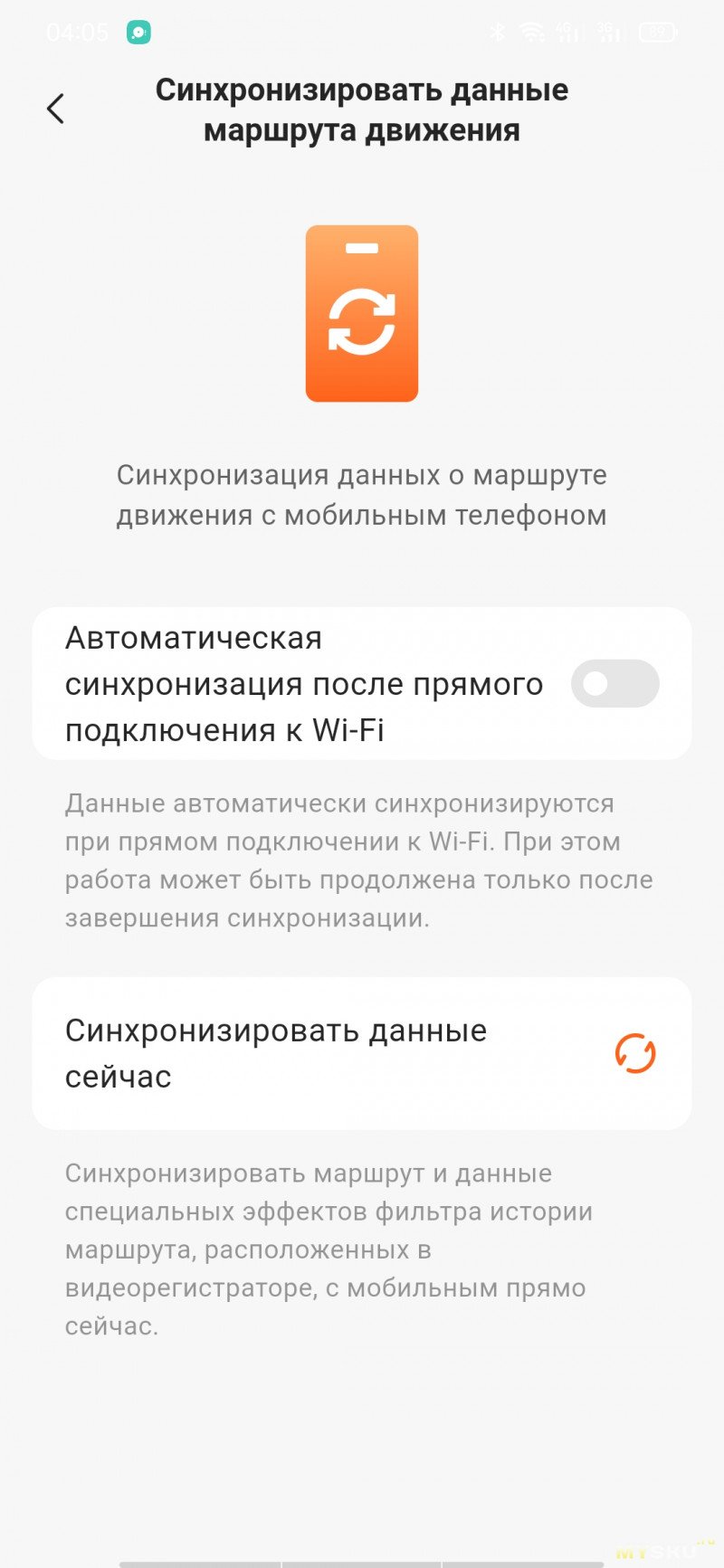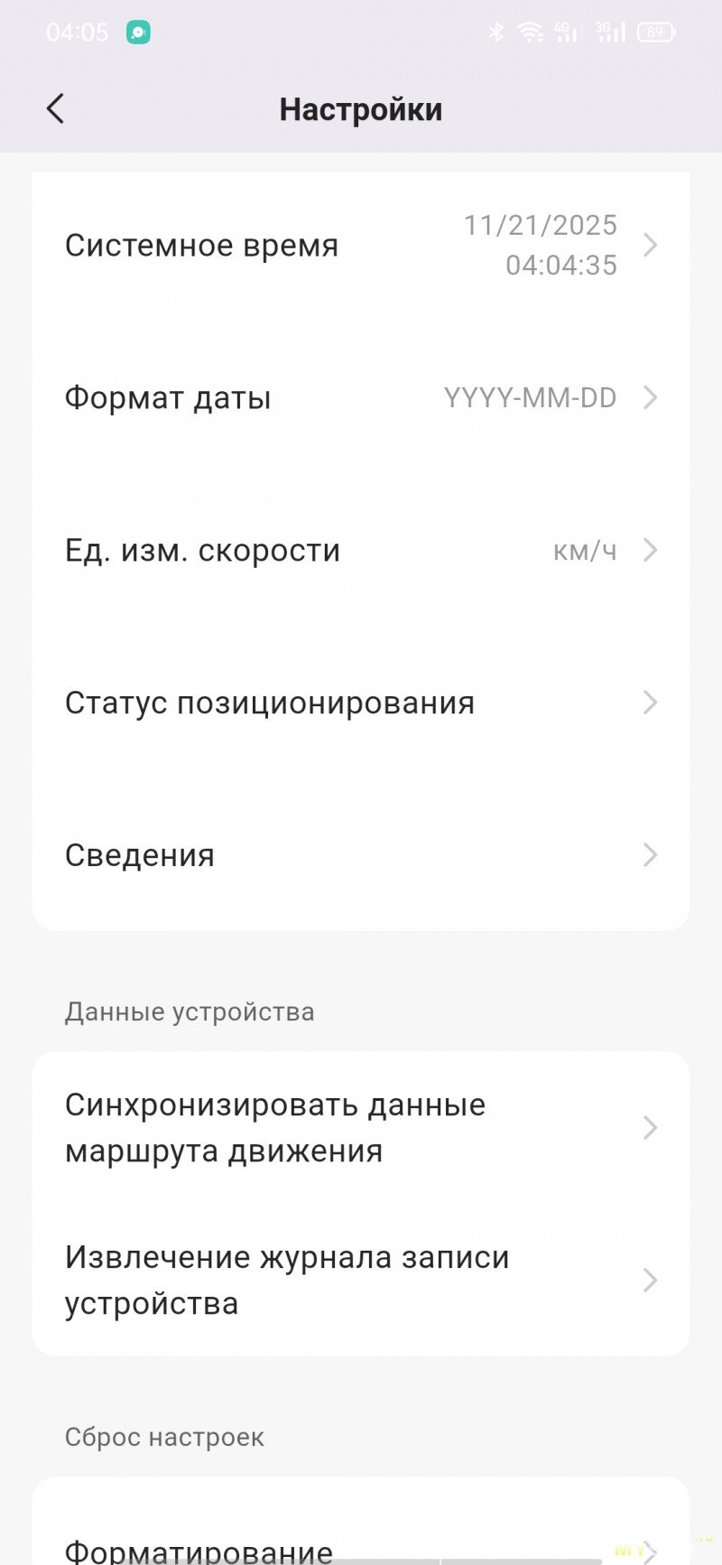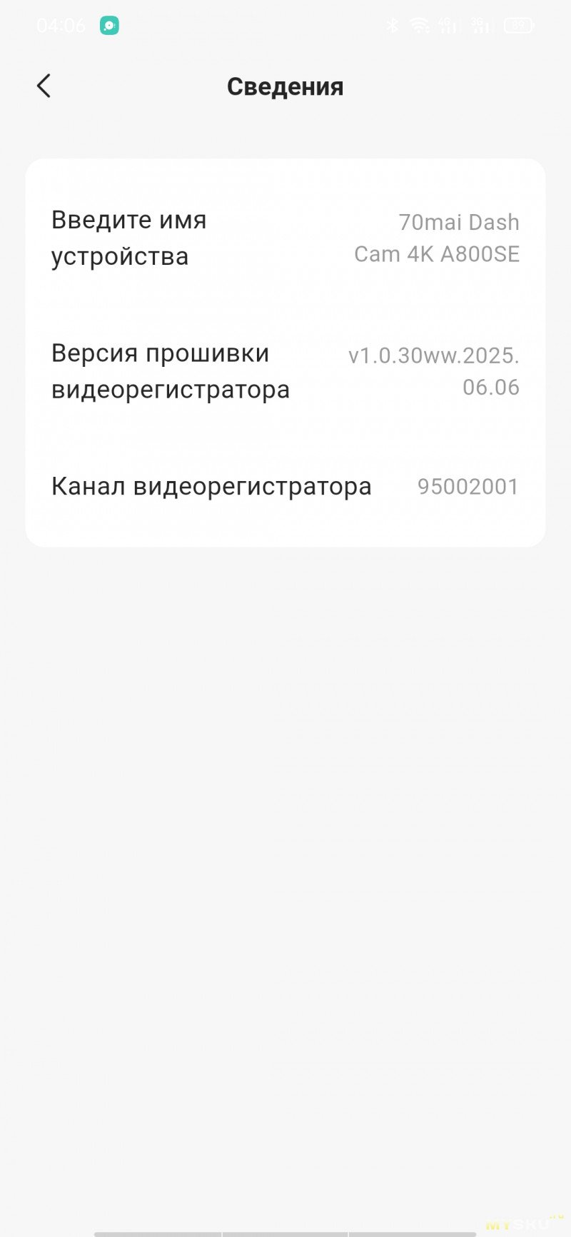 Приложение скачивается с маркета, либо через QR-код с экрана регистратора. Настраивать видеорегистратор с кнопок не так удобно, как через мобильное приложение. Как только на смартфоне появится картинка с камеры, на самом регистраторе экран будет неактивен. При просмотре галереи записей будут подгружаться миниатюры, если нужны ролики в исходном качестве, то их придётся подгружать выборочно. При необходимости можно обновить прошивку на устройстве. Подключение по WiFi, но Bluetooth и геолокация должны быть тоже включены.