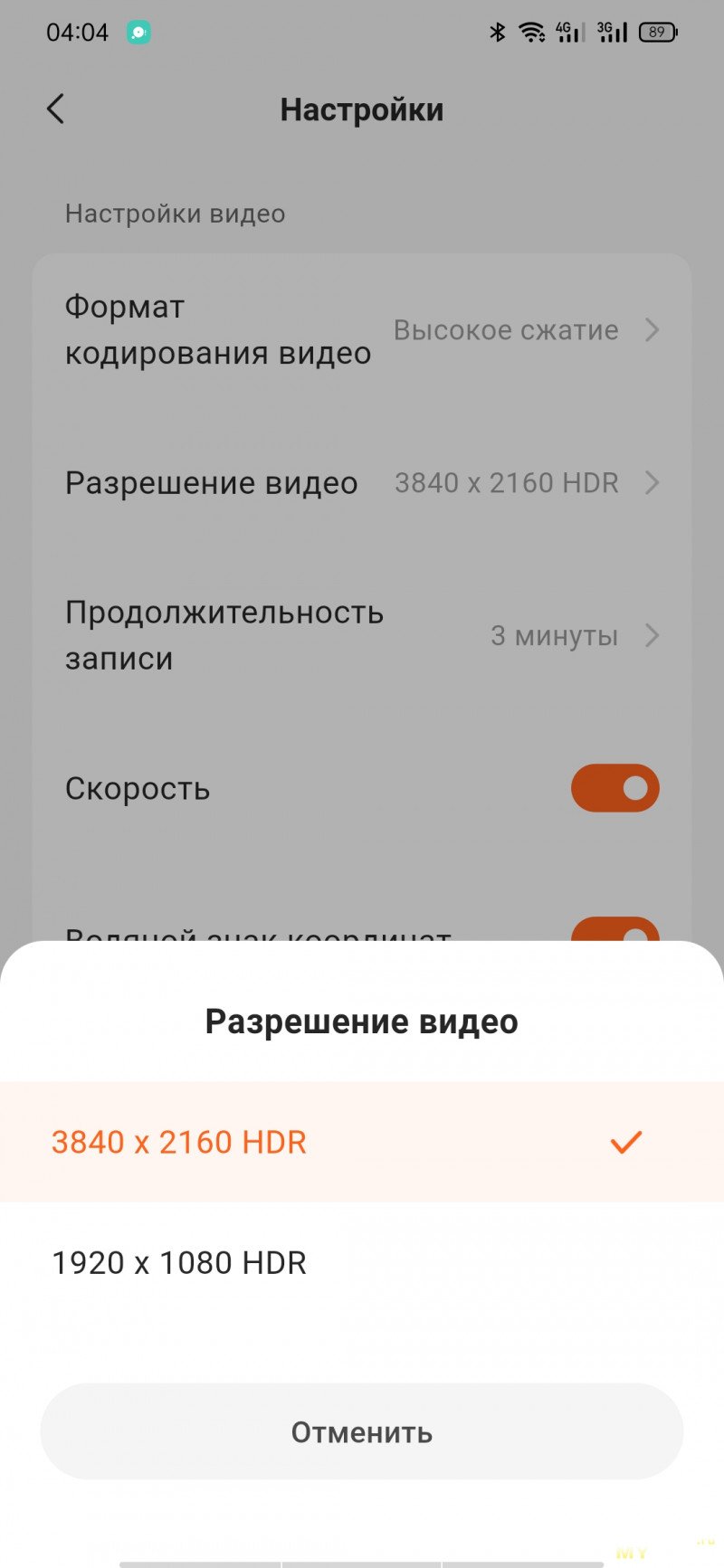 — 3-минутный файл в 4К весит 597 Мб, а со второй камеры в FHD — 217 Мб