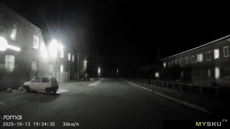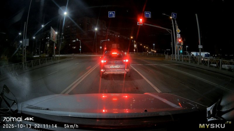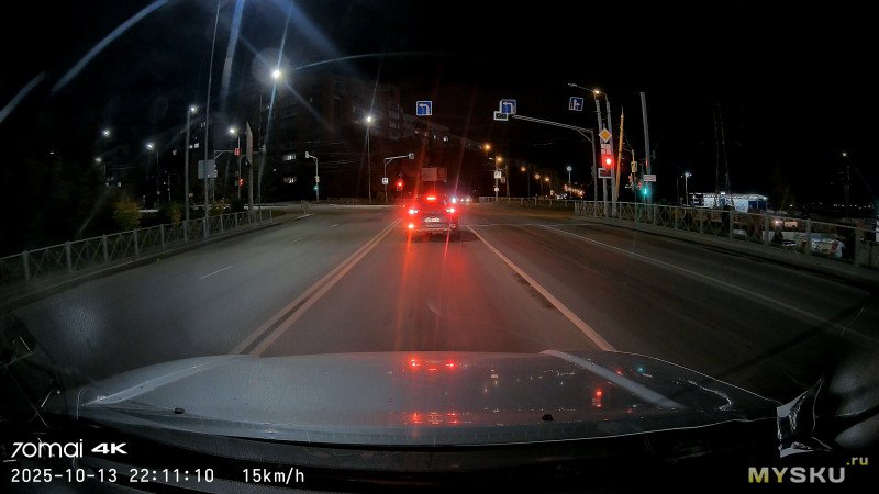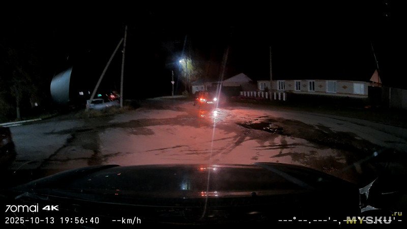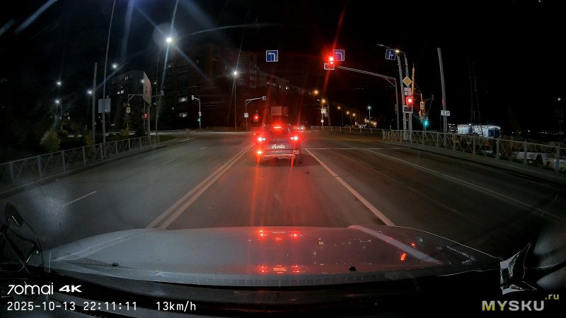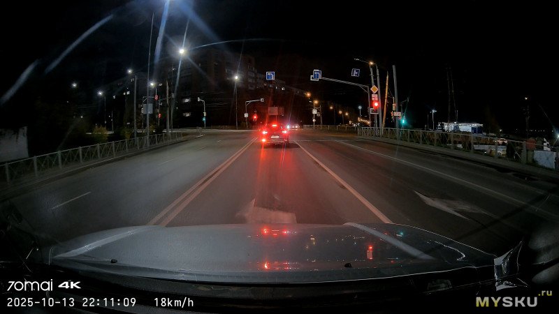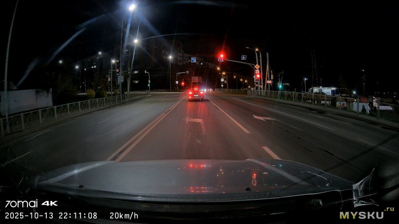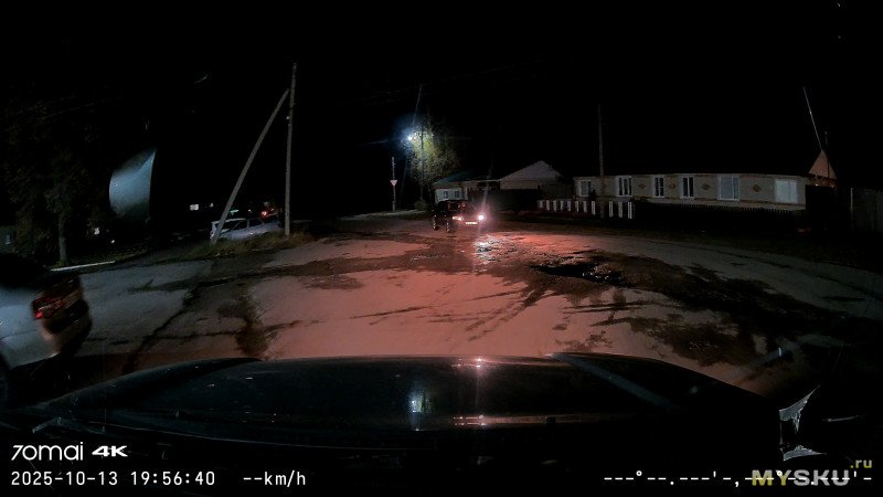 Основная камера, 4К, ночь + контровой дальний свет, город, 10км/ч