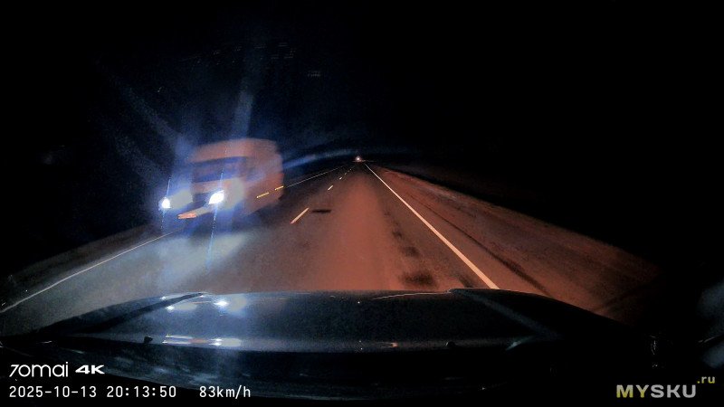 Основная камера, 4К, ночь, трасса, 80-110км/ч