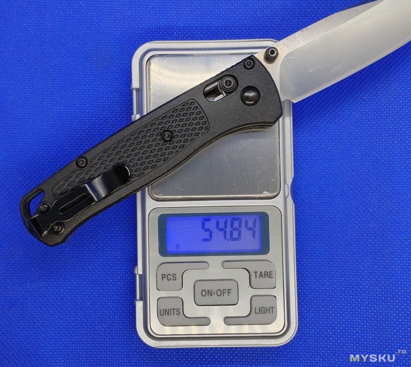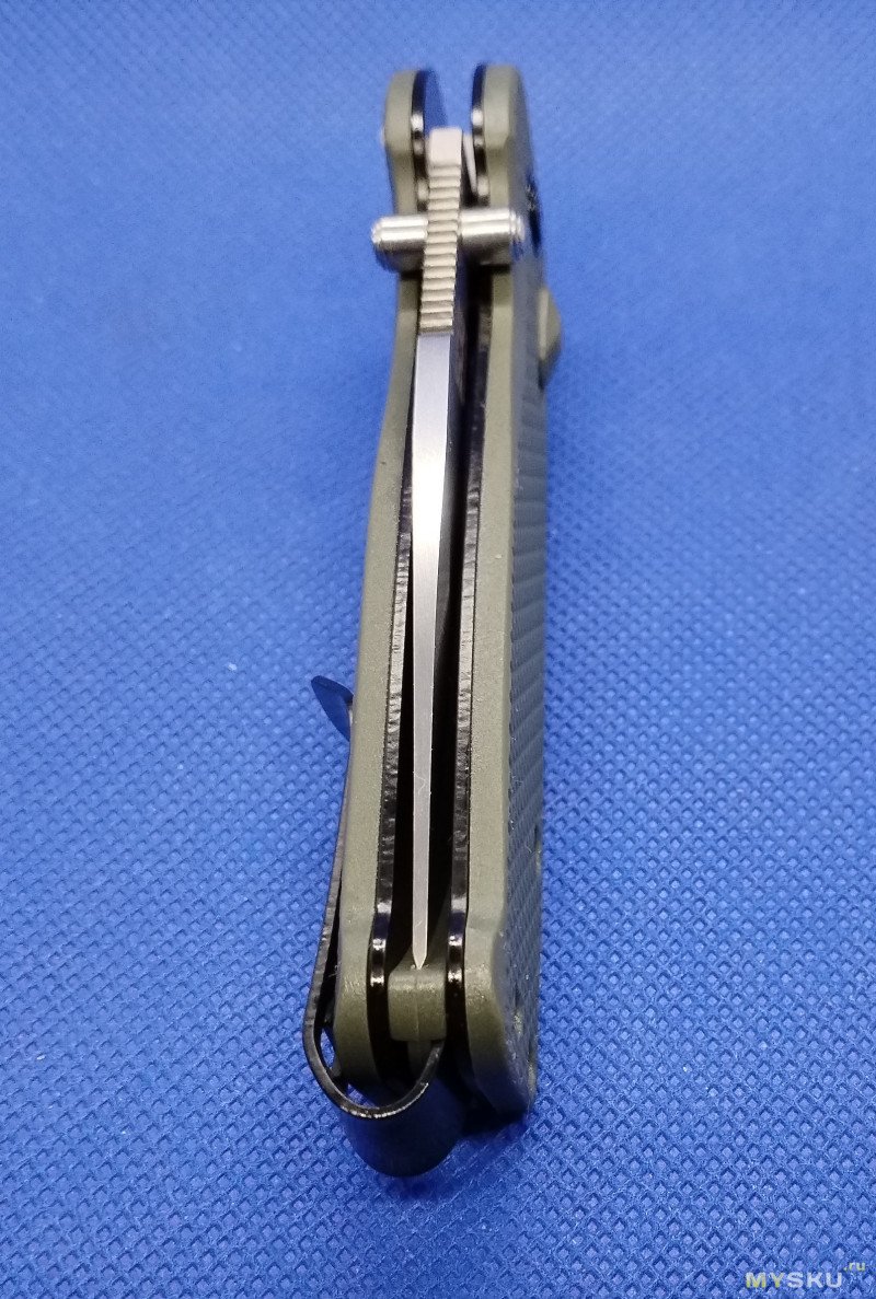 Все сделано аккуратно и достойно для такой недорогой подделки. Клинок по центру. В руке нож лежит удобно. Заточка заводская отличная. Открывание, не то что бы без проблем, есть конечно нюансы, но за шпенек – все четко.
