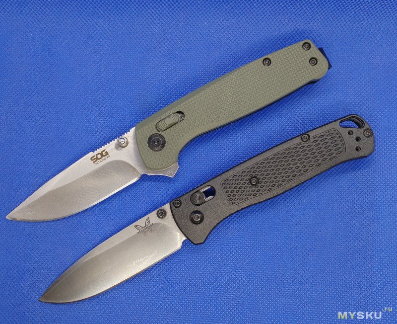 Боюсь ошибиться, но на мой взгляд SOG- у не дают покоя лавры Багаута. В принципе концепция та же. Небольшой, но с достаточной длиной клинка, замок аксис-лок, небольшой вес, маленькая клипса.Правда на Багауте масса значительно меньше