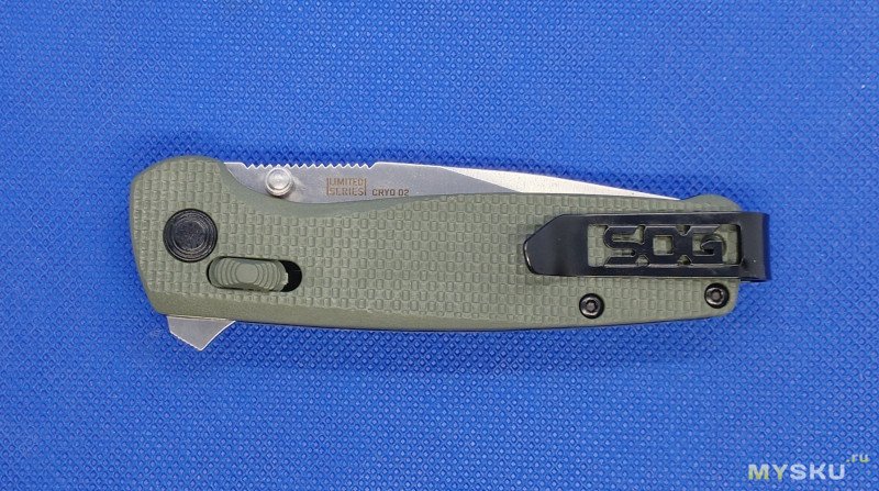 Боюсь ошибиться, но на мой взгляд SOG- у не дают покоя лавры Багаута. В принципе концепция та же. Небольшой, но с достаточной длиной клинка, замок аксис-лок, небольшой вес, маленькая клипса.