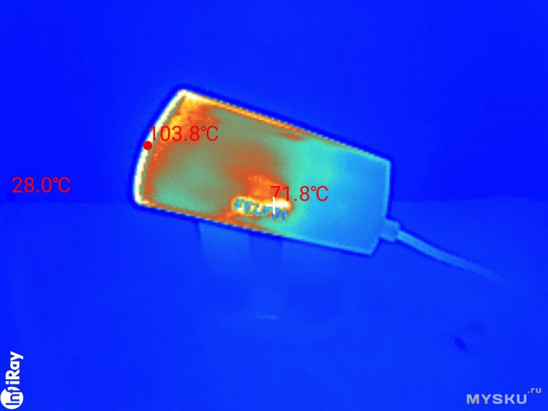 Сфотал остывающий прибор в тепловизор. Все-таки, это по большому счету паровой утюжок, необычной формы.