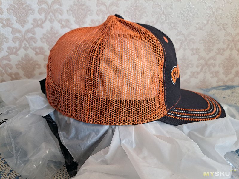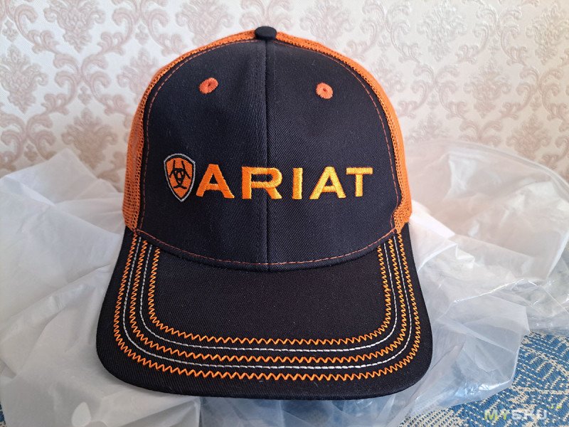 Теперь случай, для которого сильно пригодится отпариватель. Купил на Озоне недорого бейсболку Ariat. Положили ее просто в пакетик. По дороге она сильно помялась.