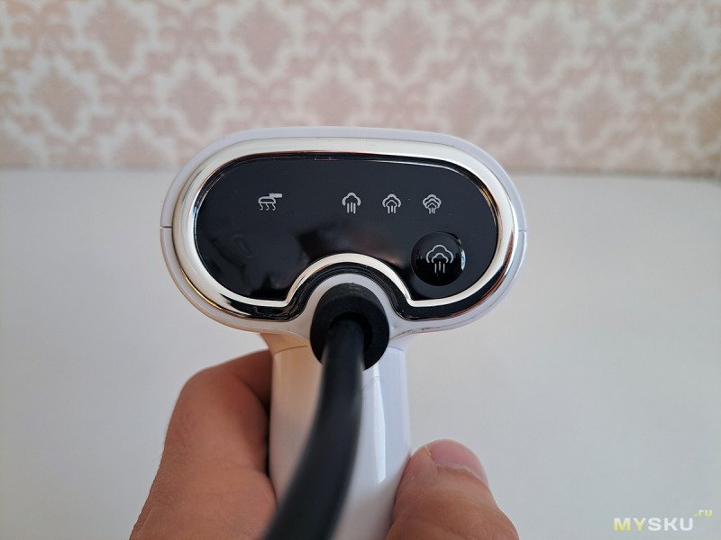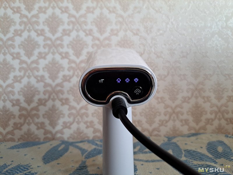 Воткнул вилку в розетку и начал готовиться к присоединению резервуара с водой. И тут почувствовал знакомый с детства «запах глажки». Оказывается, отпариватель не включается кнопкой. Как только вы воткнули его в розетку, он начинает нагревать гладильную поверхность, как старый советский утюг! И это в 2025 году! Хорошо, что я учуял запах, а то бы сильно обжегся или покрывало загорелось.