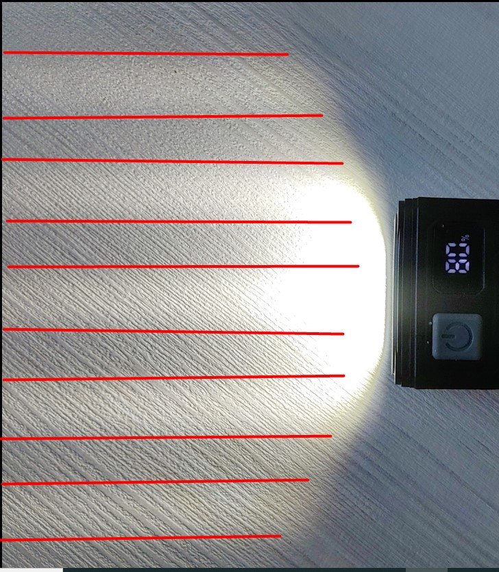⛔ Луча нет — светит в радиусе 70см вокруг себя, дальше уже проблемки.