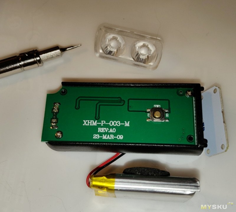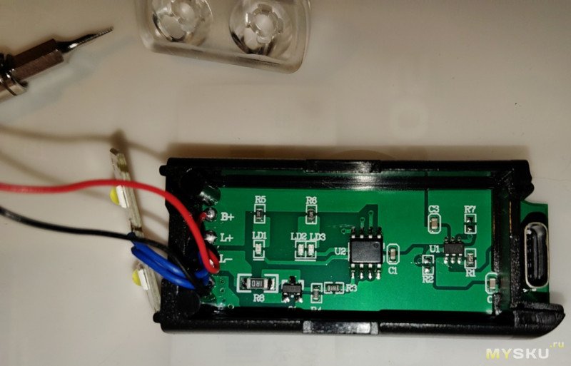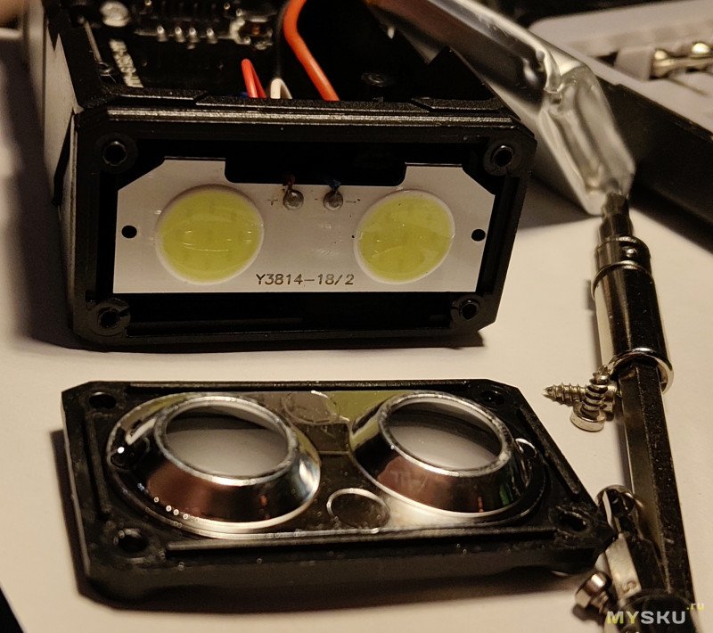 Перед разборкой фонарь был разряжен до талого, на всякий случай (на кнопку ВКЛ не реагировал уже):