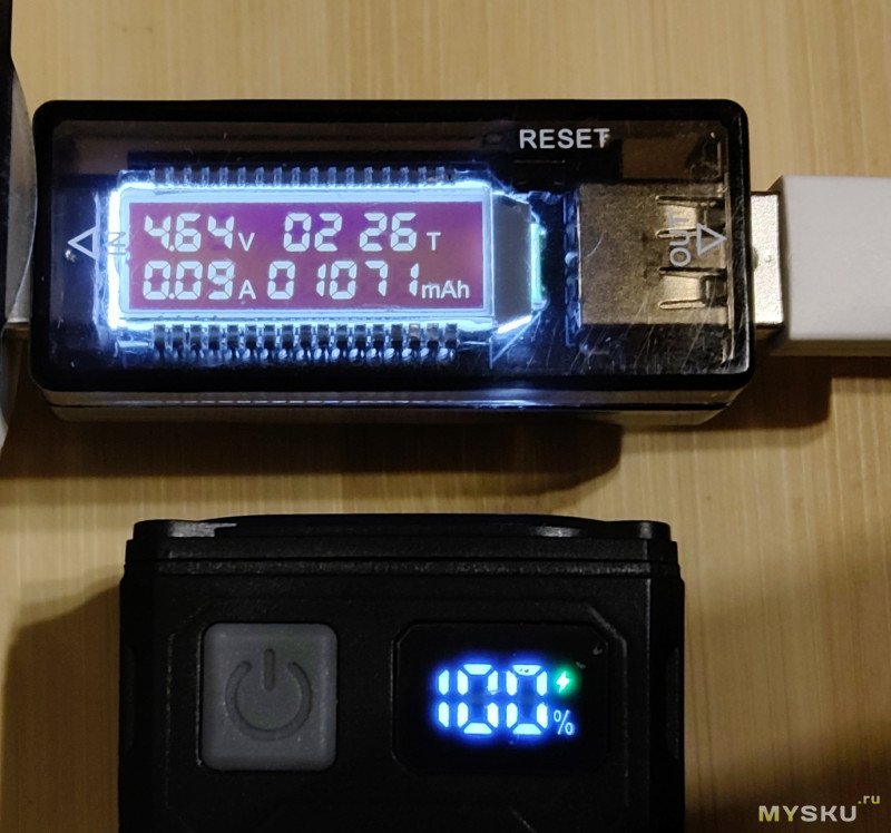 Кстати только сейчас заметил — у мелкого оказывается есть индикатор, где-то внутри красный светодиод горит при зарядке. Причем он виден только сквозь «стекло».Для домашнего теста-сравнения подобрал: