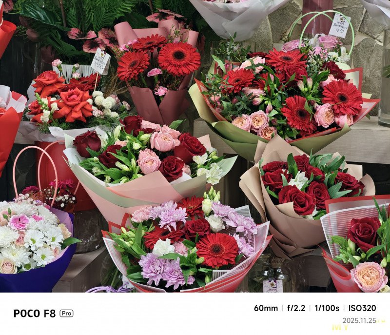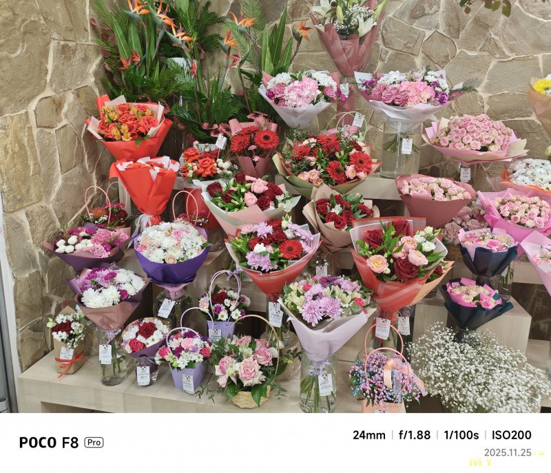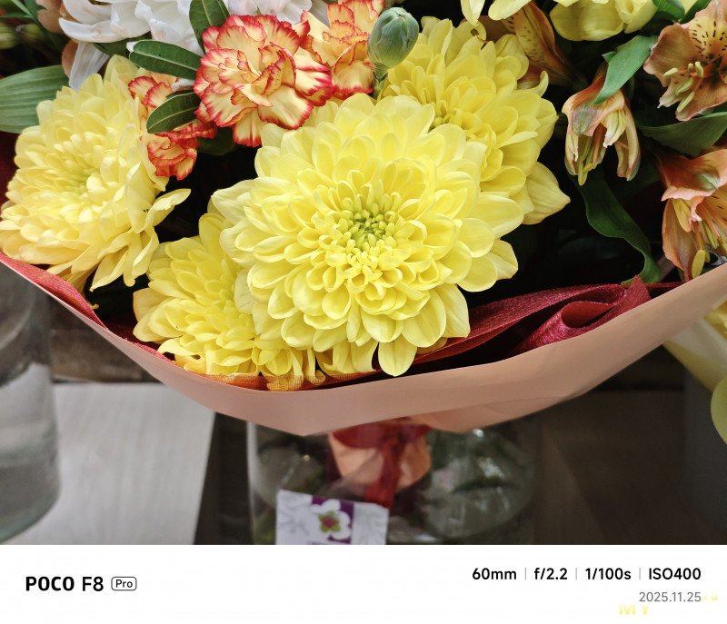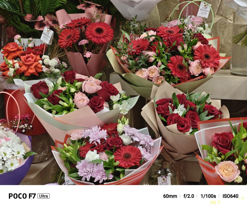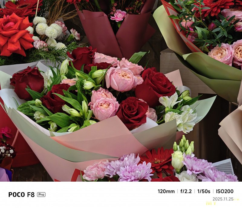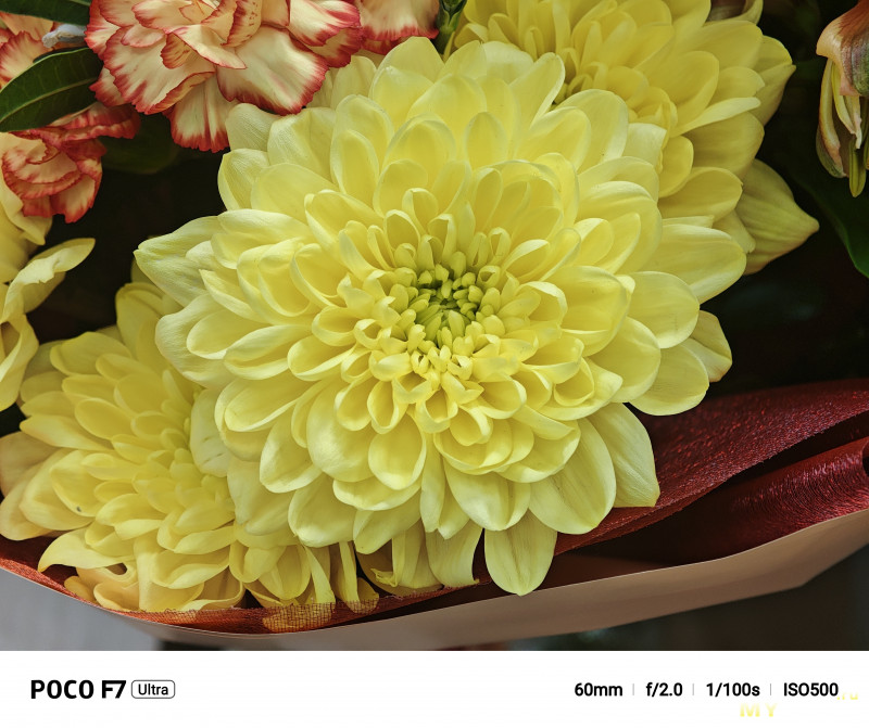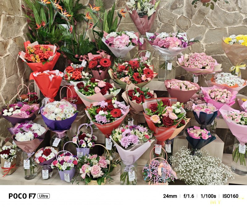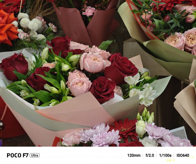 На первых сравнительных снимках видна разница в балансе белого. На POCO F7 Ultra цветы получились спокойными по яркости и насыщенности. У обозреваемого света больше и не сказать, что снимки на него лучше.