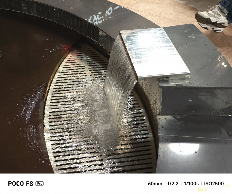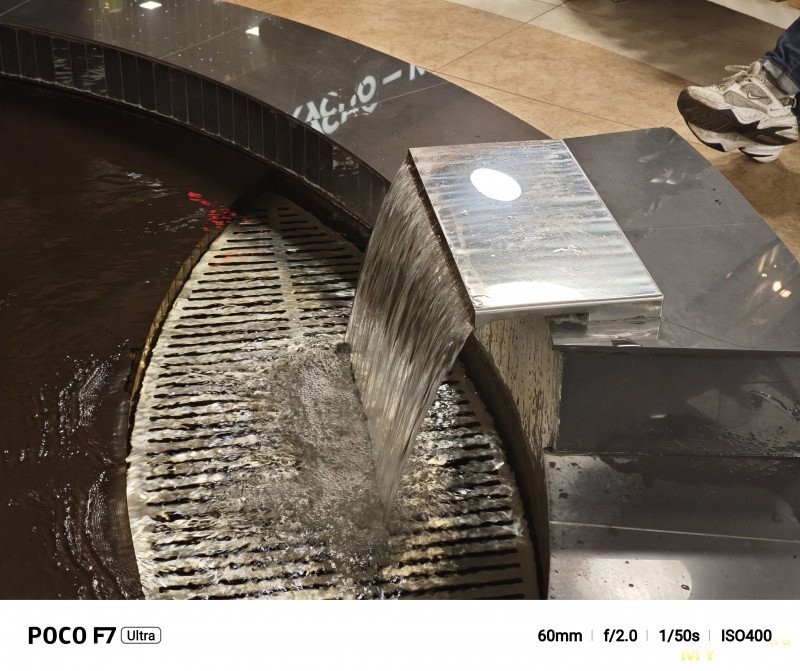 Фотографии маленького фонтана на телевики ещё раз подтверждают, что нужна корректировки. Мне не понравилось, что верхняя часть фонтана на обозреваемом смартфоне получилась засвеченной. В момент съёмки такого эффекта не было странно, что виден разный цвет воды. На POCO F8 Pro она холодного цвета, на F7 Ultra — теплого. Ближе к реальному, наверное, первый снимок.