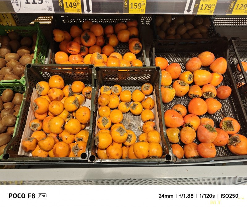 Ещё примеры фотографий ниже. Хурма на основные камеры смартфонов практически не отличается по цвету, но на телевик F8 Pro она как будто задушена. На снимке со второго телевика у меня больше желания её съесть, чем на первом.