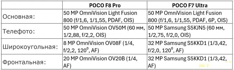 Смартфон POCO F8 Pro получился интересный. По тестам из обзора видно, что у него мощный процессор и хорошие камеры, алгоритмам съёмки которых ещё нужны правки, но появление телевика в среднем смартфоне F-линейки уже хорошо. Оптическое увеличение такое же, как и у флагмана прошлого года. У текущего флагмана, POCO F8 Ultra, камеры уже получше, как минимум у основной из них матрица большего размера и есть 5х оптический зум вместе с конфигурацией стекла и пластика в линзах, 1G+6P, как у Xiaomi 15T Pro. Получается, F8 Ultra целится не просто в производительный класс, а ещё и делает ставку на фото возможности.