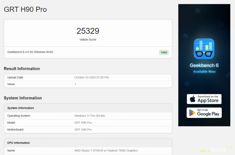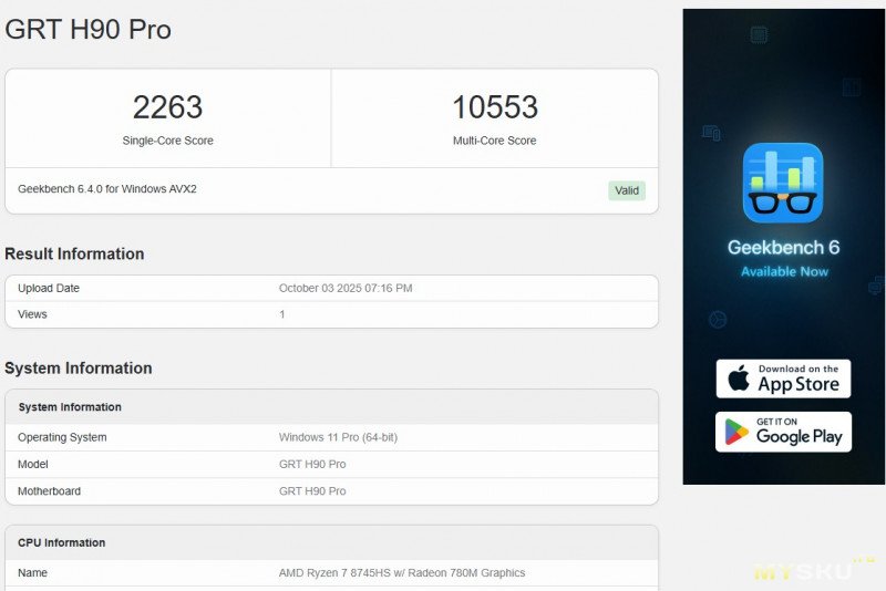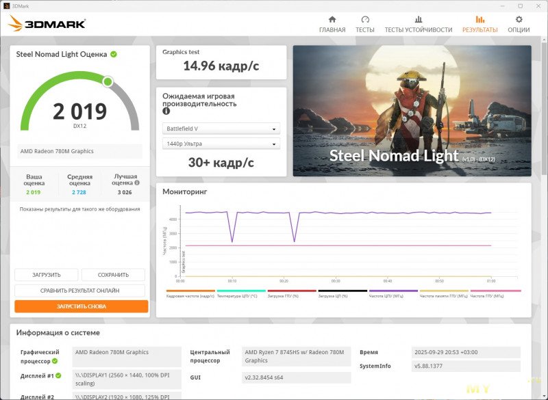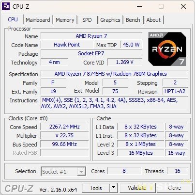 | Процессор: | AMD Ryzen 7 8745HS (8 ядер, 16 потоков, до 4.90 ГГц) |