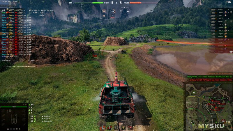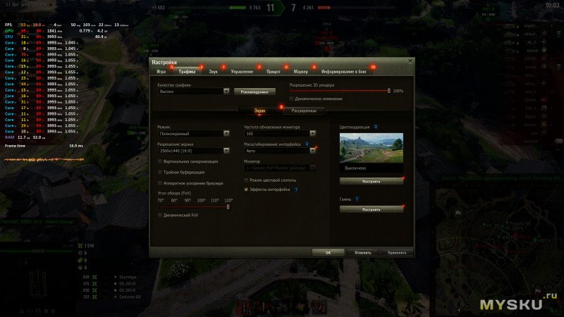 Вечером собираю свой взвод и рубимся пару часов в «Мире танков». Заранее снизил настройки с ультра до «Высоко», т.к мой основной монитор с разрешением 2К на HD клиенте.
