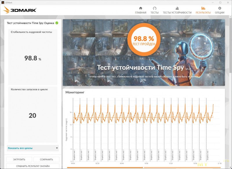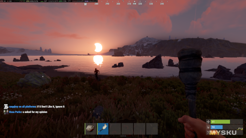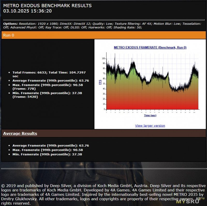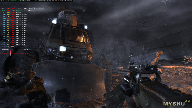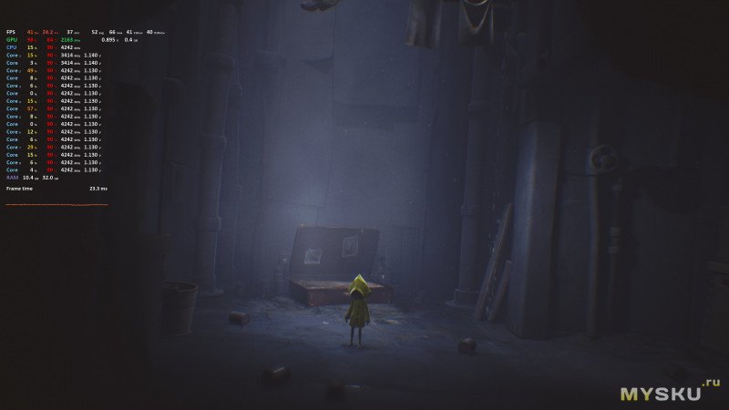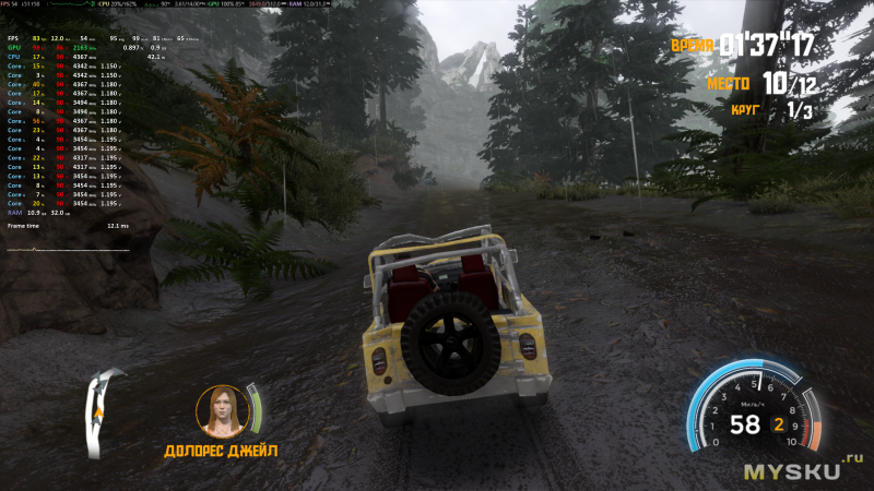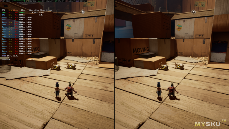 Частота кадров большую часть времени остается 60+, хотя и бывают дропы до 50 к/с.