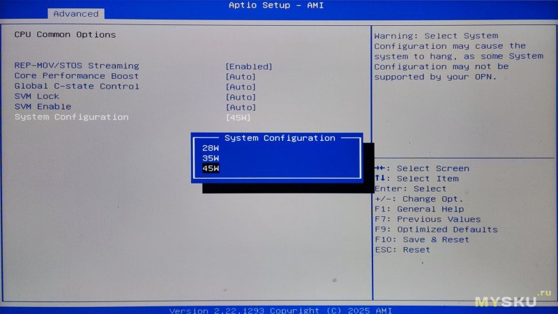 AMD CBS -> CPU Common Options -> System Configuration. Устанавливаю лимит в 45 Вт.
