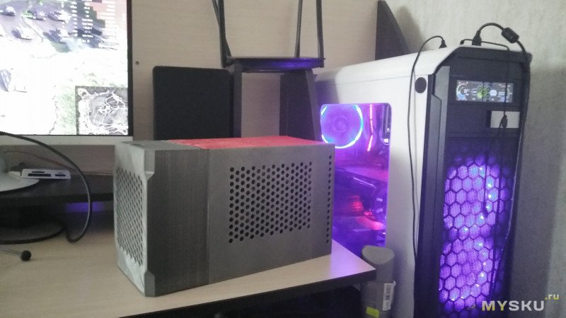 Потом попробовал готовый компактный ПК с видеокартой — уже лучше, но всё равно громоздкий.