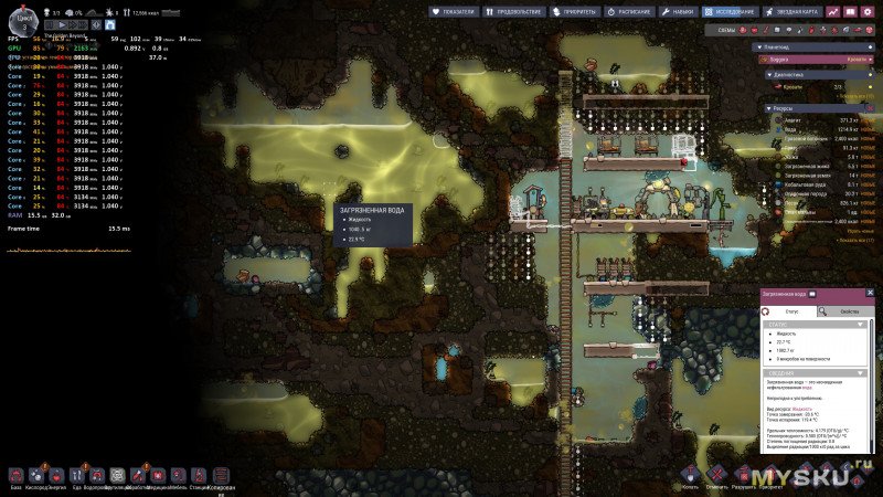 Oxygen not included, настройки по пресету Максимум, разрешение экрана 2К.
