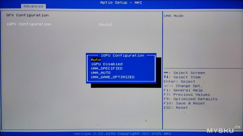 Опций и вкладок много, а из полезного, что можно изменять только лимит TDP процессора, активность системы охлаждения и объем видеобуфера памяти.