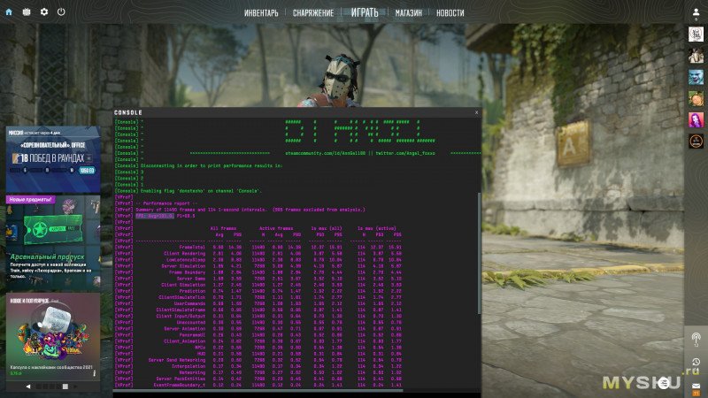 CS2, пресет настроек Средние, разрешение1080р, бенчмарк.