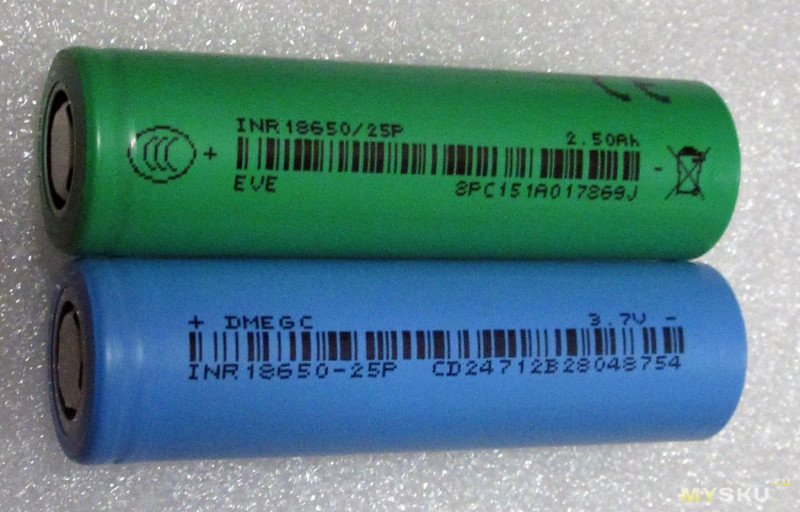 Недорогие высокотоковые аккумуляторы EVE INR18650/25P и DMEGC INR18650-25P
