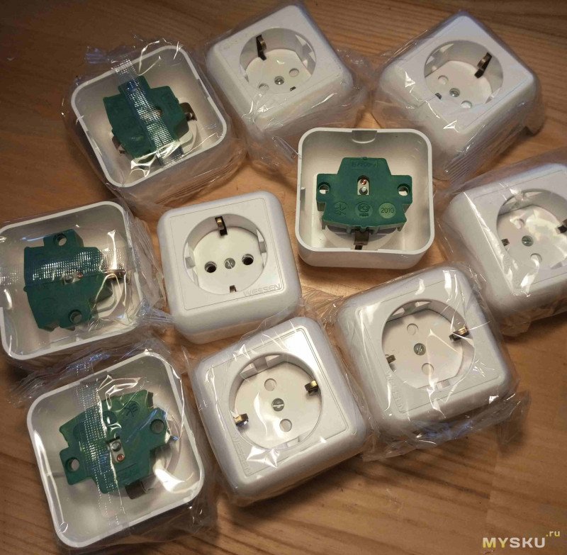 6 немецких розеток серии Wessen 59 по 50руб(сделаны в 2010г., по лицензии в РФ, г Козьмодемянскнашел на рынке) – всего 300руб