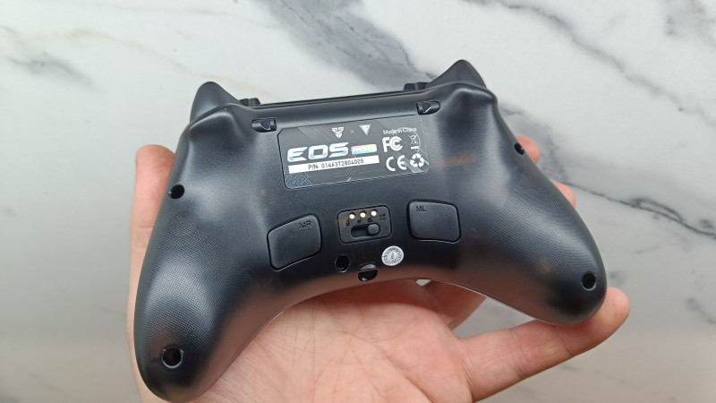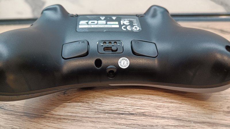 На нижней части пластиковая основа с мелким рисунком. Именно он не дает геймпаду скользить в руках. Также можно заметить дополнительные кнопки. Задние кнопки не использую, так как мне не удобно их нажимать. Для расширения возможностей можно активировать.
