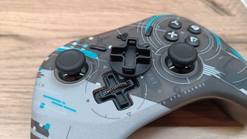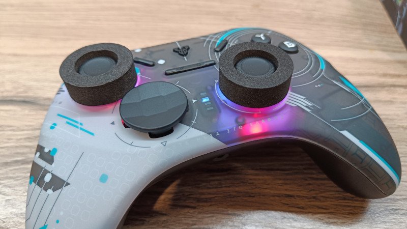 Изначально стики защищены большими накладками, которые оберегают механизм от повреждения. Кнопки ABXY c маркировкой, но без тактильного контура буквы. Надеюсь, что мне как любители поиграть в игры их хватит на долго и они не облезут. Как таковой подсветки кнопок нет, только зона стиков. В кнопках действительно переключатели, так как это ощущается тактильно и по звуку нажатия. D-pad можно заменить на любой из 3 возможных. Мне больше всего зашел именно с «крестиком». Так лучше всего ощущаются стороны нажатия. Но это чисто индивидуальное мнение. Меняется со значимым усилием. Стики значительно проще достаются.