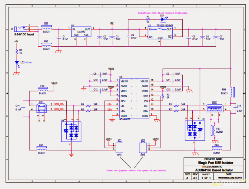 Так вот, adum3160 и adum4160 они обе только до usb full speed (т.е поддерживают только usb1.1)- они обе на скорость только до 12Мбит/с, а одним из отличий насколько помню в том, что 4160 есть в версии и с «усиленной» изоляцией до 5кВ, а не только на 2,5 (впрочем все-равно не сомневаюсь что китайцы максимум до 2,5кВ микросхемы паяют на таких гальваноразвязках). Ну и может какие-нибудь еще косячки в 4160 подправили, но тут уже точно не скажу.