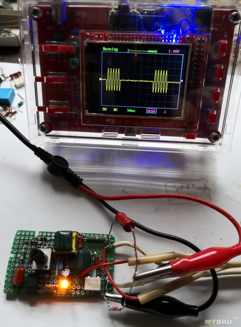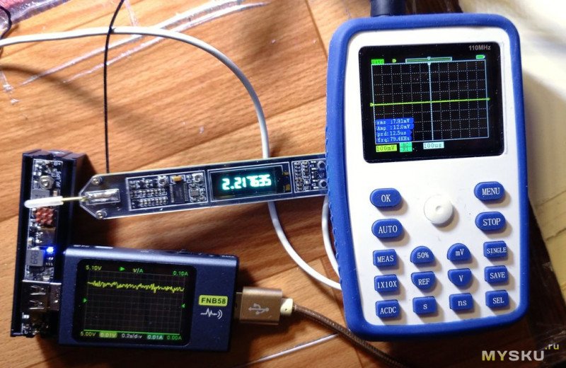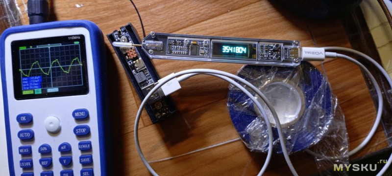 P.S. Своей покупкой доволен как слон, ожидал худшего. Один щуп у меня уже был в запасе из лабораторных. — полоса пропускания самого прибора реально 70...80 МГц. Ещё один, вдохновившись, смастерил сделал по-классике. Прошивки менял от родной до актуальной. Остановился на быстром и надёжном варианте «1.5.6». Теперь приятно удивлён.