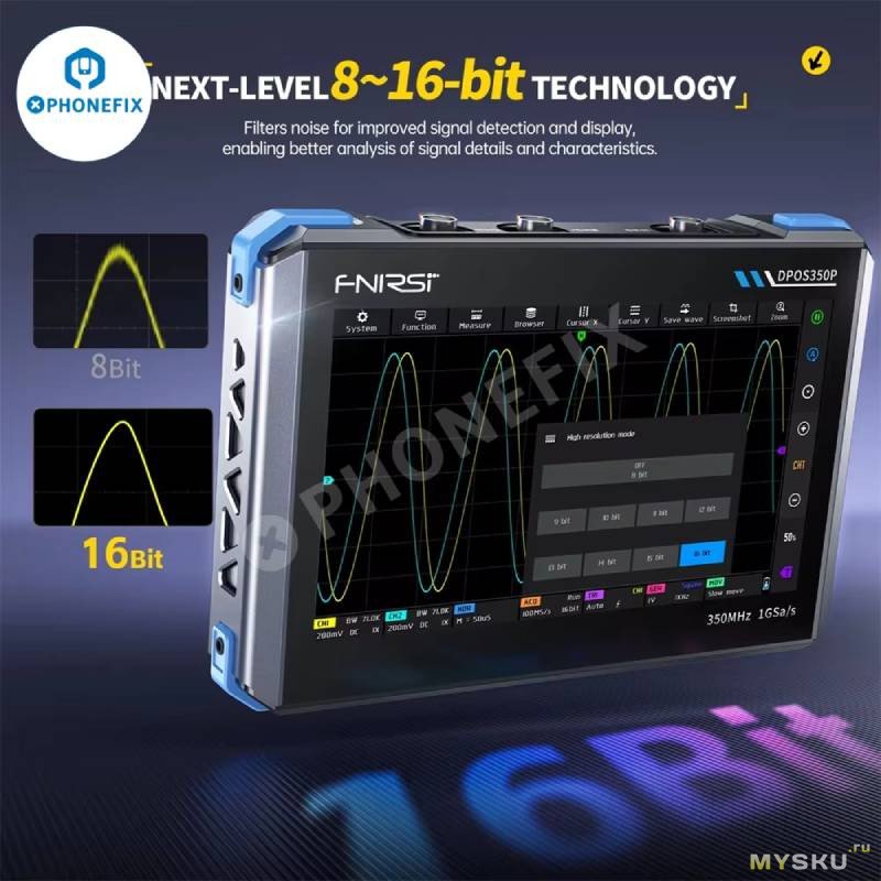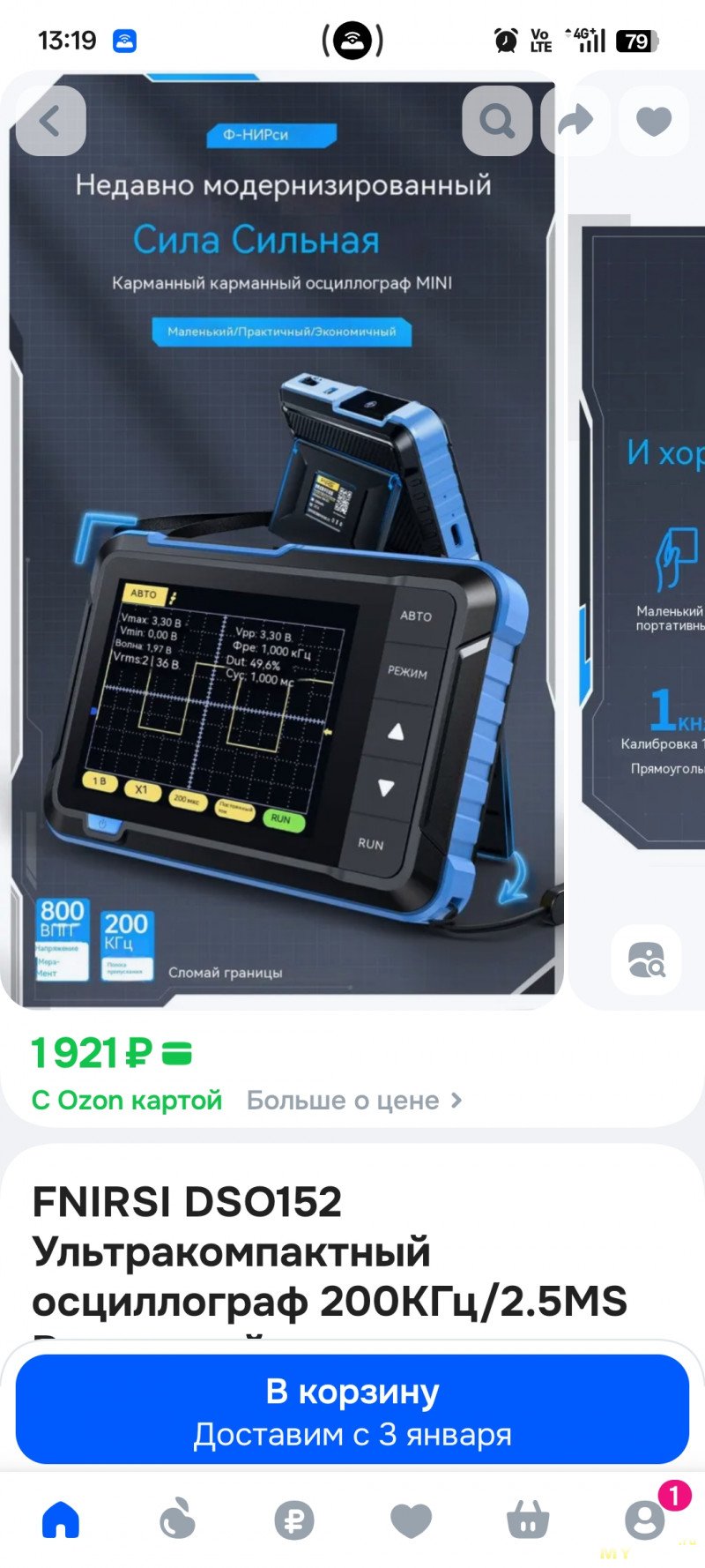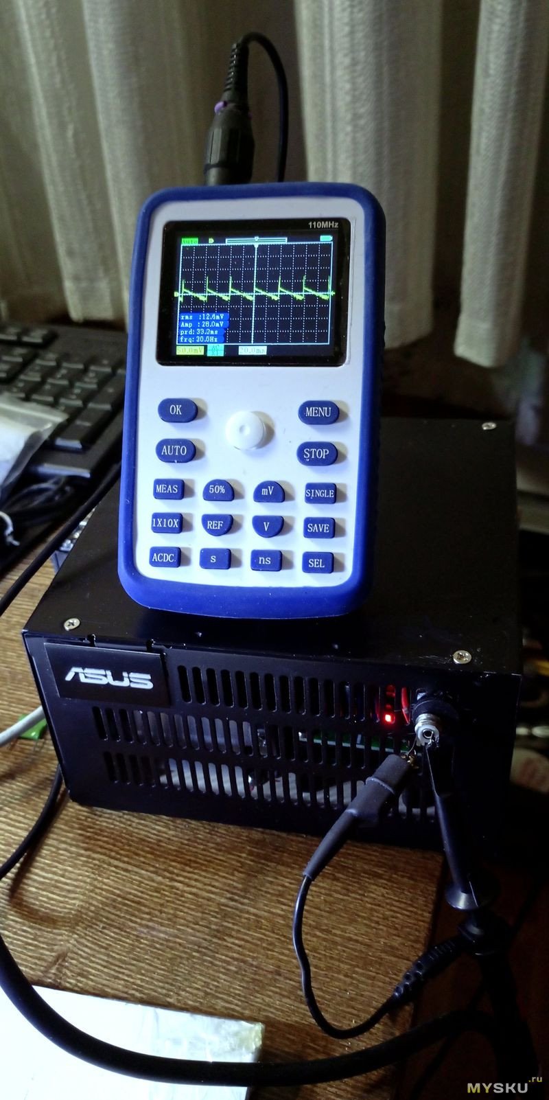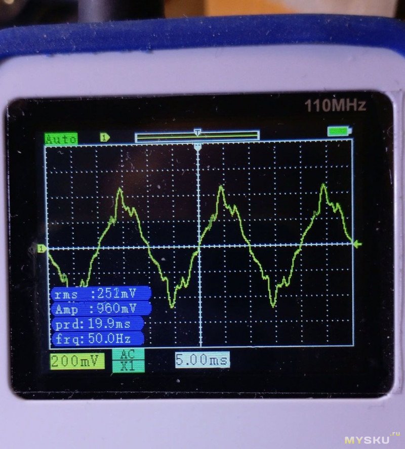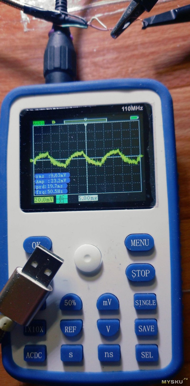А из сравнительно дешёвых но приличныхх осциллографов разумно посмотреть на FNIRSI 1013D — два канала, чувствительность 50 mV, 7" 800х480 экран, 100 МГц аналоговая полоса, на столе не мешает — размер с книгу и глаза не болят, батарея на 6000 мАч держит до 3-х часов и вполне приличный — у самого такой есть. Это будет по любому лучше этих игрушек-показометров с открытку. Умеет много и при его цене 1/3 от цены моего Hantek DSO 2D15 на первых порах лучшего варианта вам и не понадобится, а том и сами увидите хватает вам его возможностей или нет. Ну а хотите что- карманное — FNIRSI 1C15 отличная машинка и обойдётся чуть дороже игрушки, зато полоса 110 Мгц и видит сигналы от 1,5 мВ а игрушки от долей вольта и главное не глючит во славу идиотизма…