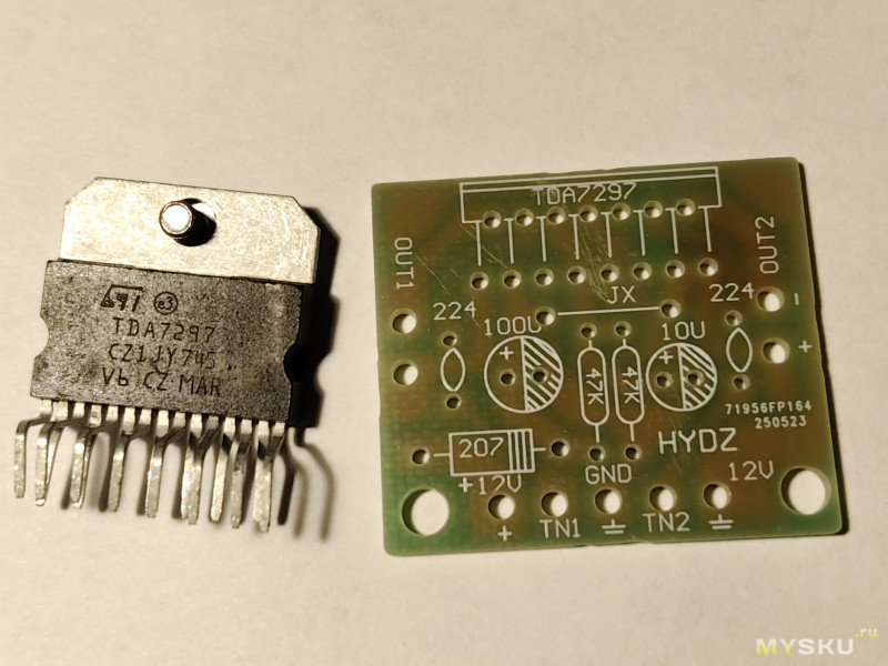 А плата знакомая, стоит спаянная на радиаторе, но ей нужна нагрузка 8 Ом, а у моих 25-АС-1 как-то всего 4 Ом:), и разумнее TDA7379 (она же в китайском мундире CD7379) — 4 Ом это её, а 18 — 20 Вт для 25 Вт басовиков достаточно.