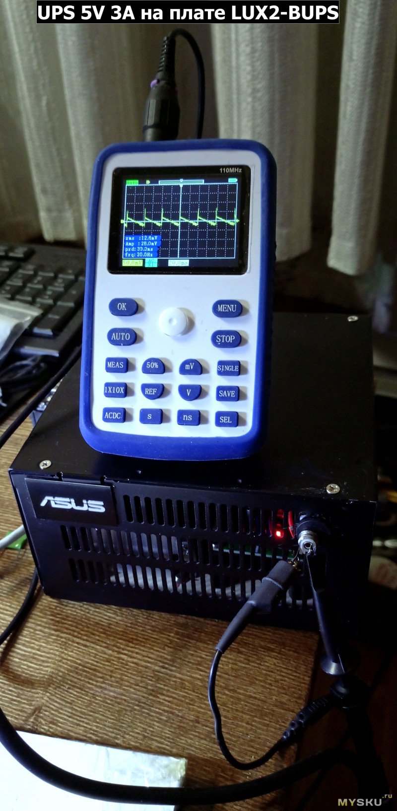 Вот, искал причину почему частотомер мусор считает, а после проверял шумы самодельного UPS на базе платы LUX-2BUPS сделанного для питания измерительных приборов: