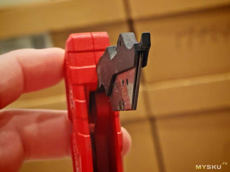 Нож очень понравился. Есть с чем сравнивать — до этого работал с Ремоколор (не поддерживал лезвия других производителей), Стэнли (слишком большой и тяжёлый, в кармане неудобен, вставка новых лезвий только с отвёрткой и разборкой, что при нарезке кварцвинила с постоянно отлетающими лезвиями очень неудобно, тем более лезвия двухсторонние же, после затупливание одной стороны просто развернуть его), ВоркПро (удобен дозатором вытаскивания лезвия 1-3-5 мм при открытии мешков и коробок — не порежешь лишнего, но пластиковый корпус хлипковат, да и малое выдвижение лезвия не всегда удобно).