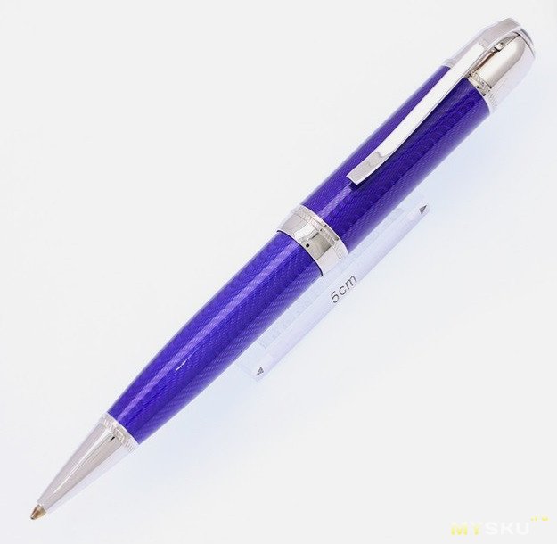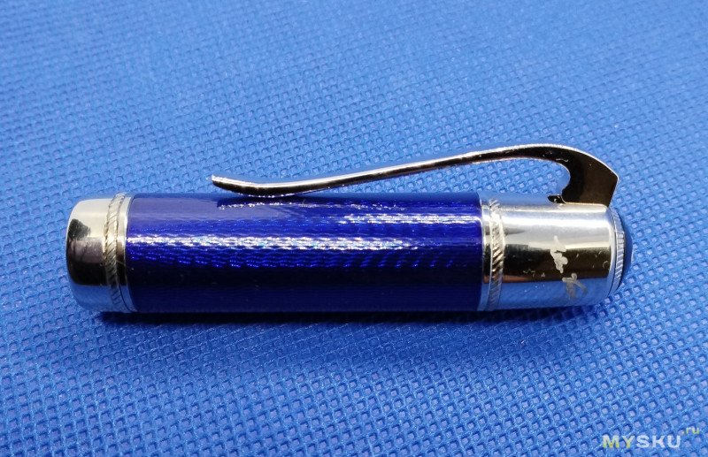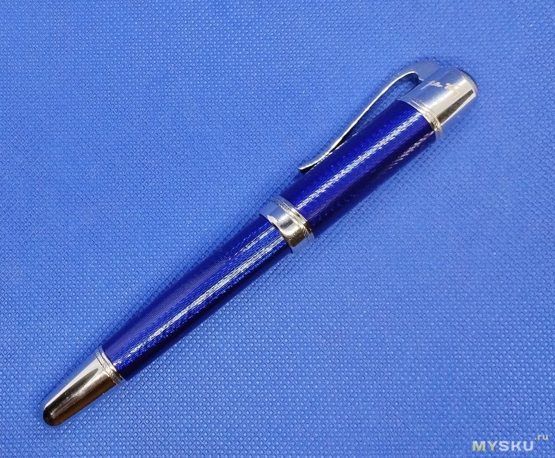 А вот само письмо. Под углом 45 градусов от оси ручки к плоскости бумаге и больше ручка пишет отлично. Если угол уменьшается, то писать становится некомфортно — есть пропуски. Тоже самое, если стараться писать быстро — возможно пропуски. Если же писать, не торопясь — все отлично. Т.е. если достать ручку, открутить массивный колпачок, и не торопясь поставить подпись на документах — все отлично и достойно.Клипса очень жесткая, из кармана точно не выпадет