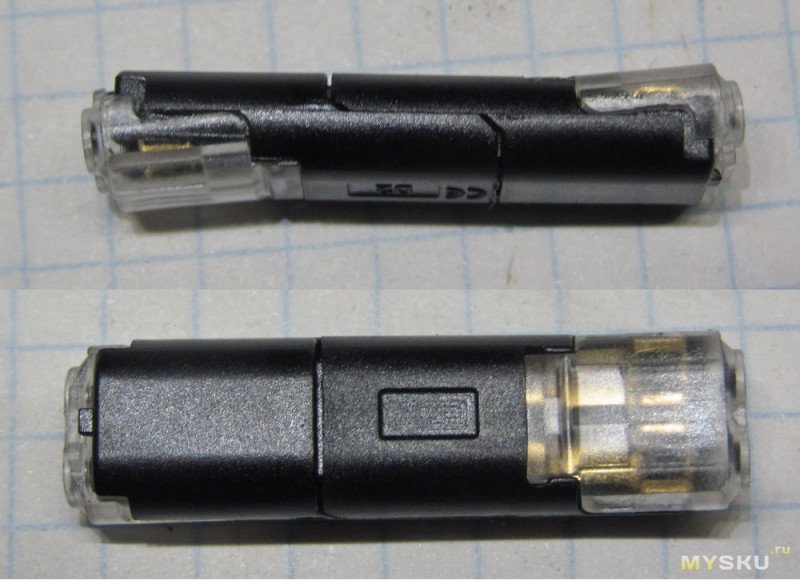 В содединенном виде размеры всей халабуды 35*6.2*9.7мм. Очень компактно, я почему-то ожидал что будет больше. Размер отверстия под провод — 2мм. Гидроизоляции понятно никакой.