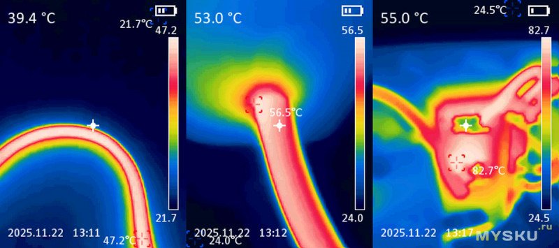 Для проверки работы удлинителя в режиме максимальной нагрузки через него был пропущен ток 16 А в течение 30 минут.