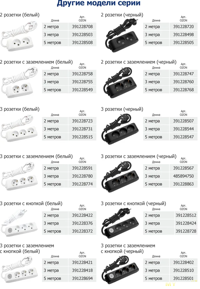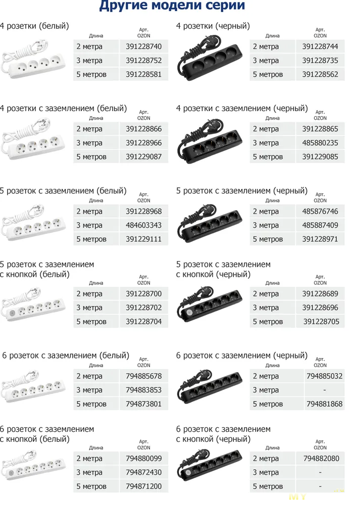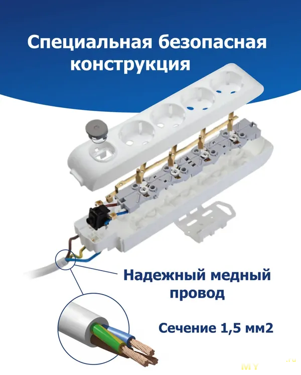 На корпусе блока розеток, проводе и вилке есть название бренда. Маркировка: