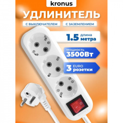 Блок розеток: «Kronus», «16A 250V ~», «MAX 3500W».