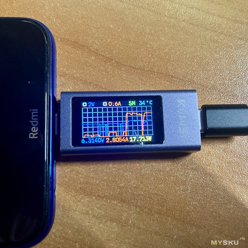 «Адаптер-переходник» нагрелся ощутимо (тот, который между СЗУ и тестером):