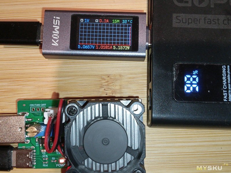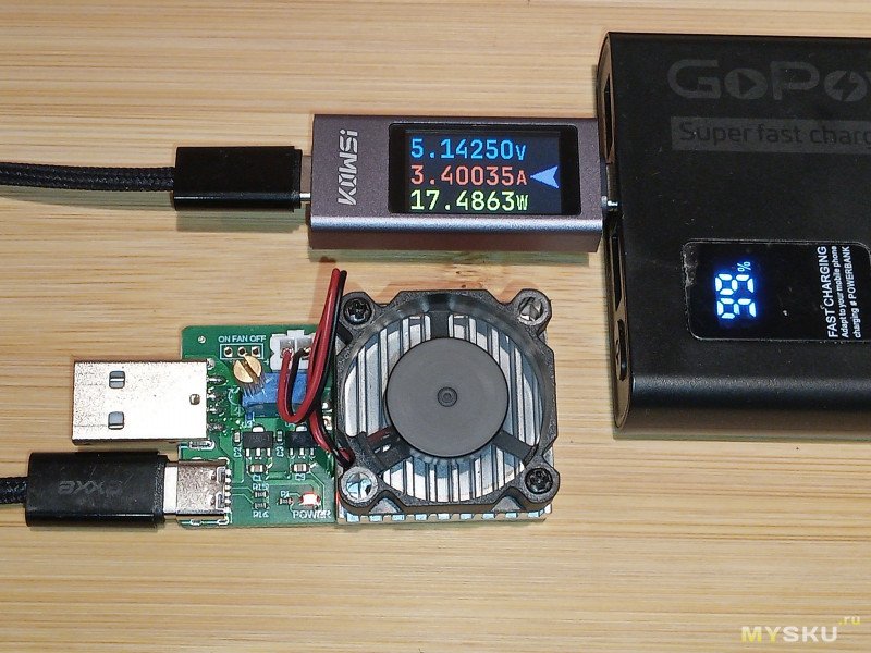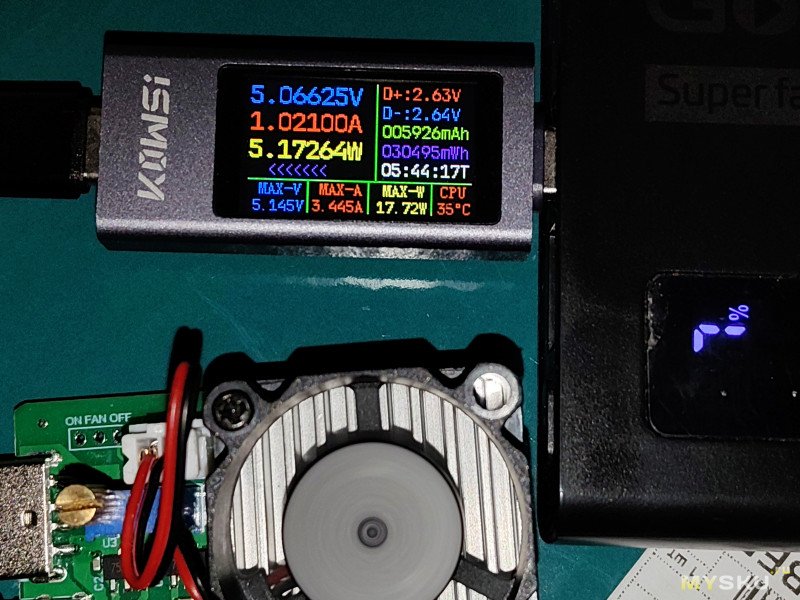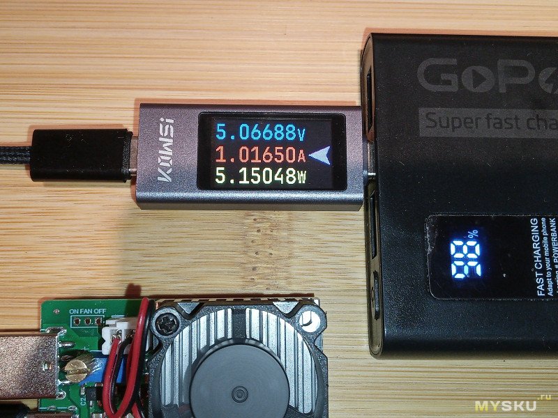 Теперь настало время тестовой проверки KOWSI KWS-2303C совместно с внешним аккумулятором GoPower PB03-10 (10000mAh 3.0A 22.5W 2USB/Type-C):