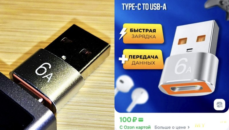 Для работы с USB-A — использовался переходник-адаптер (на Озоне 100руб.± ):
