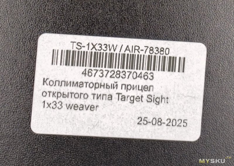 Называется он так: Коллиматорный прицел открытого типа Target Sight 1x33 weaver. В его в кодовом обозначение и указание на какое оружие он будет применяться TS-1x33W/AIR – пневматика.