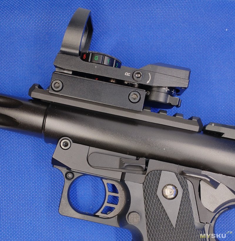 Логично, что если есть планка, то на нее можно что-то поставить. Ничего кроме коллиматора я бы не хотел использовать для данного пистолета. А он в свою очередь должен быть простой, недорогой и достаточно эффективный для своей цены.