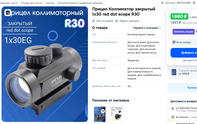 Я приобрел его за 1482 руб. С брендом Borner в это же время прицел cтоил 1492 руб.